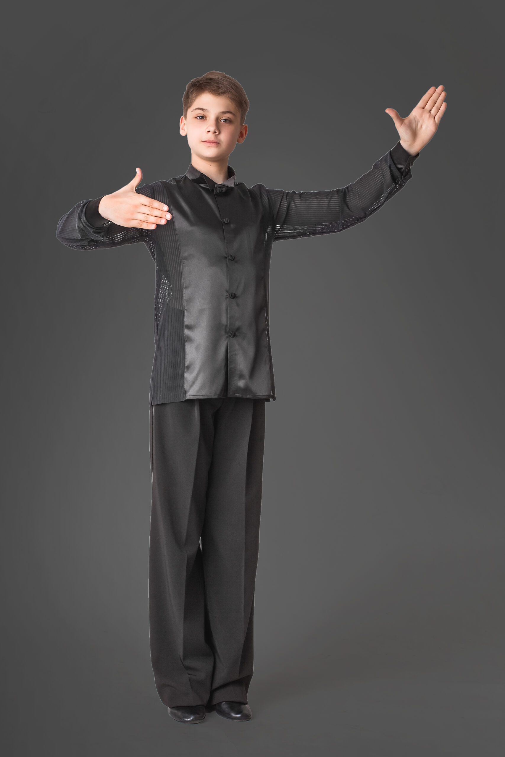 Pants with satin stripes and a satin belt.